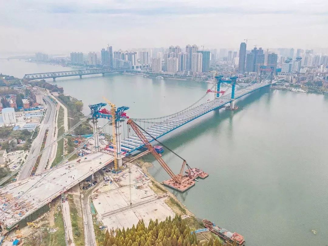 據了解,襄陽市龐公大橋位于漢江大橋下游約780m處,工程起于長征路大慶路路口,止于星光大道龐公路路口,包括主梁的過江橋梁工程、兩岸的接線及疏解工程,路線全長共計2.6公里,其中橋梁總長約2公里,跨漢江部分長756米,是襄陽市重點交通項目。我司于2017年7月中旬就承接該項目1~3#鋼塔的制作與安裝環節,在面對時間緊、任務重的雙重壓力下,海波重科龐公大橋項目經理部成員高度重視,嚴格按照襄陽市、業主單位、總包單位制定的既定工期目標保質保量的完成任務,這也使得本次吊裝合龍進展順利。