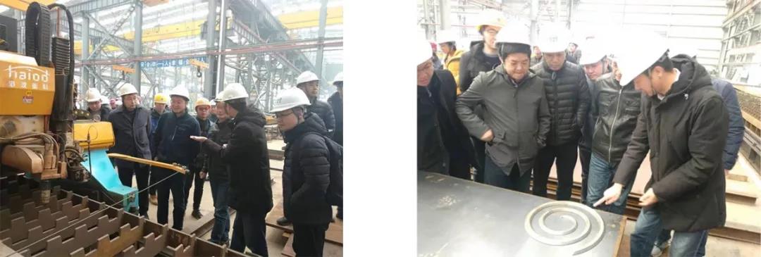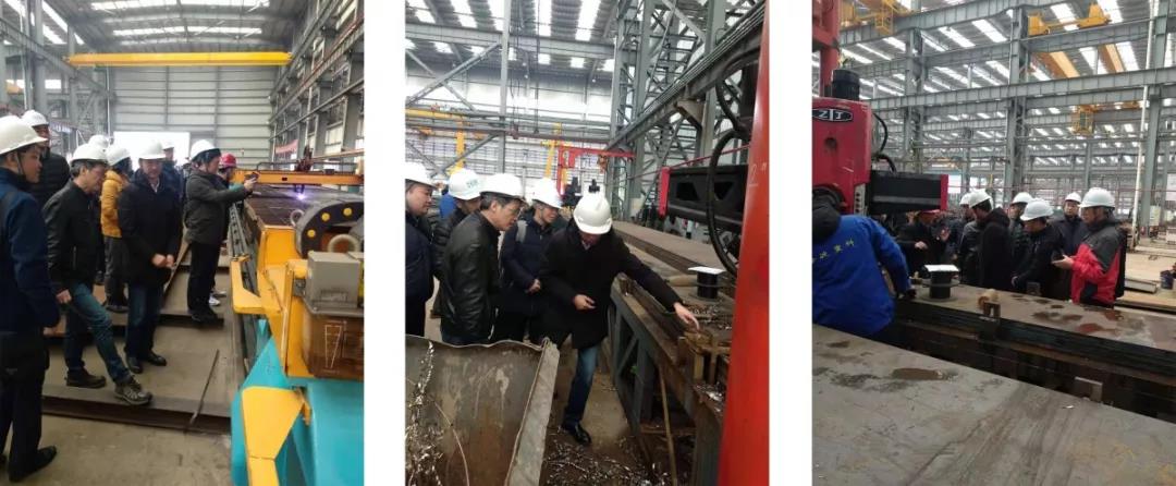 湖北省交通廳建設處副處長周炎新、湖北省交通廳公路局處長呂厚全、副處長謝華鸞、湖北省院副總監張貴士、長江路橋總經理王懷才、書記馮太坤、總工楊建波、江北東項目業主董事長左光恒、副經理黃遵義、中交二公院二分院書記孫貴清、工研院副院長夏飛、橋梁院副院長、總工朱玉、四航局一公司副總工程師劉永峰、黃國忠、工研究結構所總工李平杰、北京工業大學、同濟大學各位老師及領導蒞臨海波重科漢南分公司鋼結構加工廠做現場考察工作。