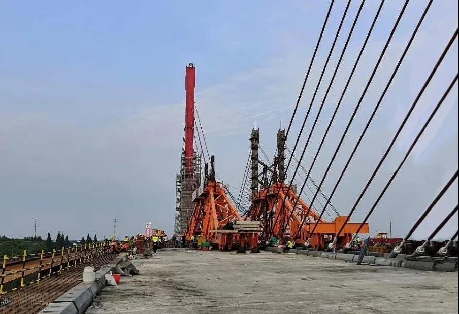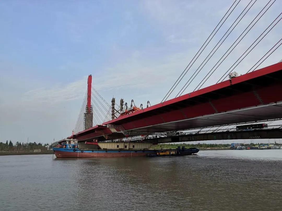 上海泖港項目部還通過多種創新技術及方案,賦予主橋諸多新的“閃光點”:通過采用球鋼支座和疊層橡膠支座的支承體系,大幅提升了塔梁固接體系斜拉橋的抗震性能;鋼主梁兩側設置后拼裝挑臂,通過時間和空間的錯位實施,巧妙地增加了橋梁的安全距離,減小了相互干擾。泖港大橋改建完成后,大橋距離水面高度將完全滿足IV級航道的通航需要,提升航道運輸能力,使整個平申線航道成為浙滬之間的一條水上高速通道,對支撐上海市國際航運中心建設、改善黃浦江上游地區交通條件、環境質量和防洪除澇能力具有重要作用。