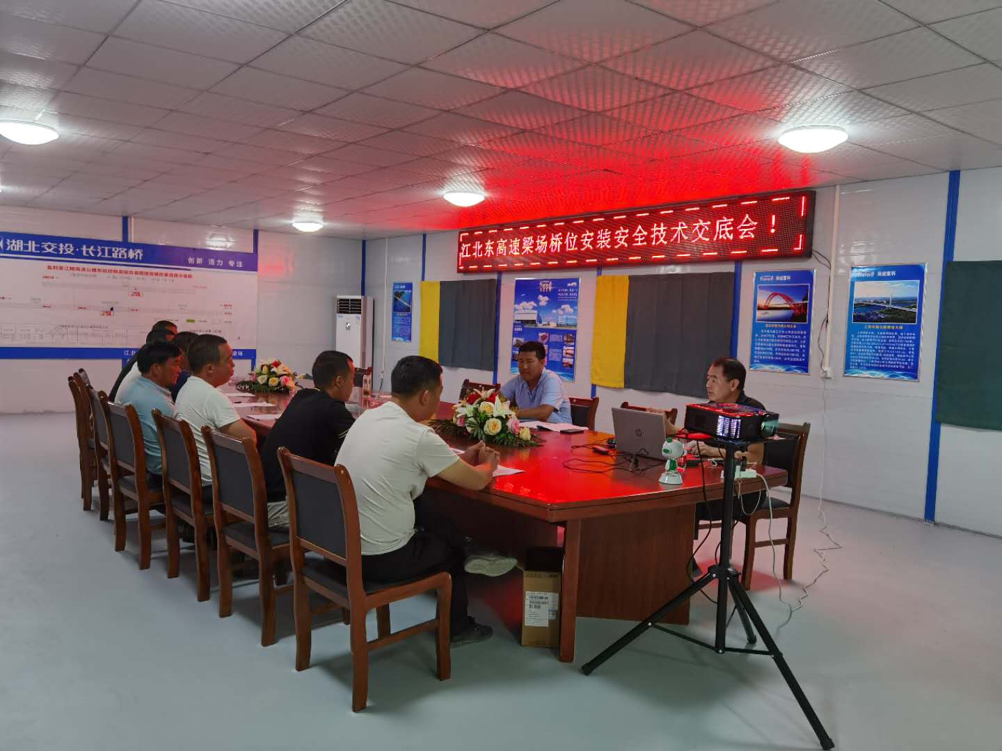 (海波重科新聞報道)2020年6月8日晚,為切實提升項目整體安全管理意識,有效提高作業人員安全技術水平,海波重科江北東高速項目部召開梁場橋位安裝安全技術交底會,海波重科項目經理閆思為、生產經理陳孝海、安全主管吳秋松、生產主管張林,架橋隊長熊明順等出席會議。