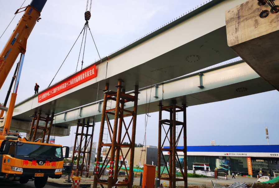 (海波重科新聞報道)2020年7月7日,由海波重科承建的濟寧西外環十二標段鋼箱梁項目首吊成功,這也標志著濟寧市預計年底建成通車的目標又邁向了一大步。