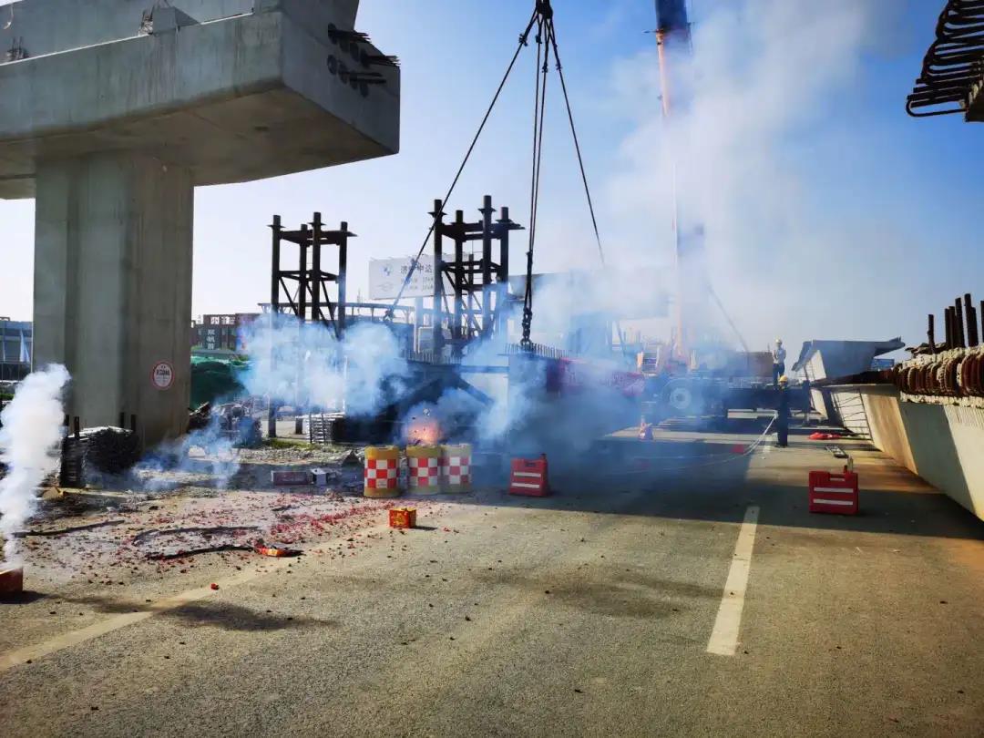 經過約長達一個多小時的設備調試,濟寧西外環十二標段首次吊裝的第一片鋼箱梁被緩緩吊起,準確無誤的落在預定架設點,現場瞬間爆竹齊鳴人聲鼎沸。作為濟寧市的大型市政項目,項目建成后對于完善濟寧市中心城區骨干路網、緩解中心城區交通擁堵、便捷城區對外交通聯系具有重要意義,海波重科也將一如既往,不辱使命,為下一步通車工作奮勇前行。