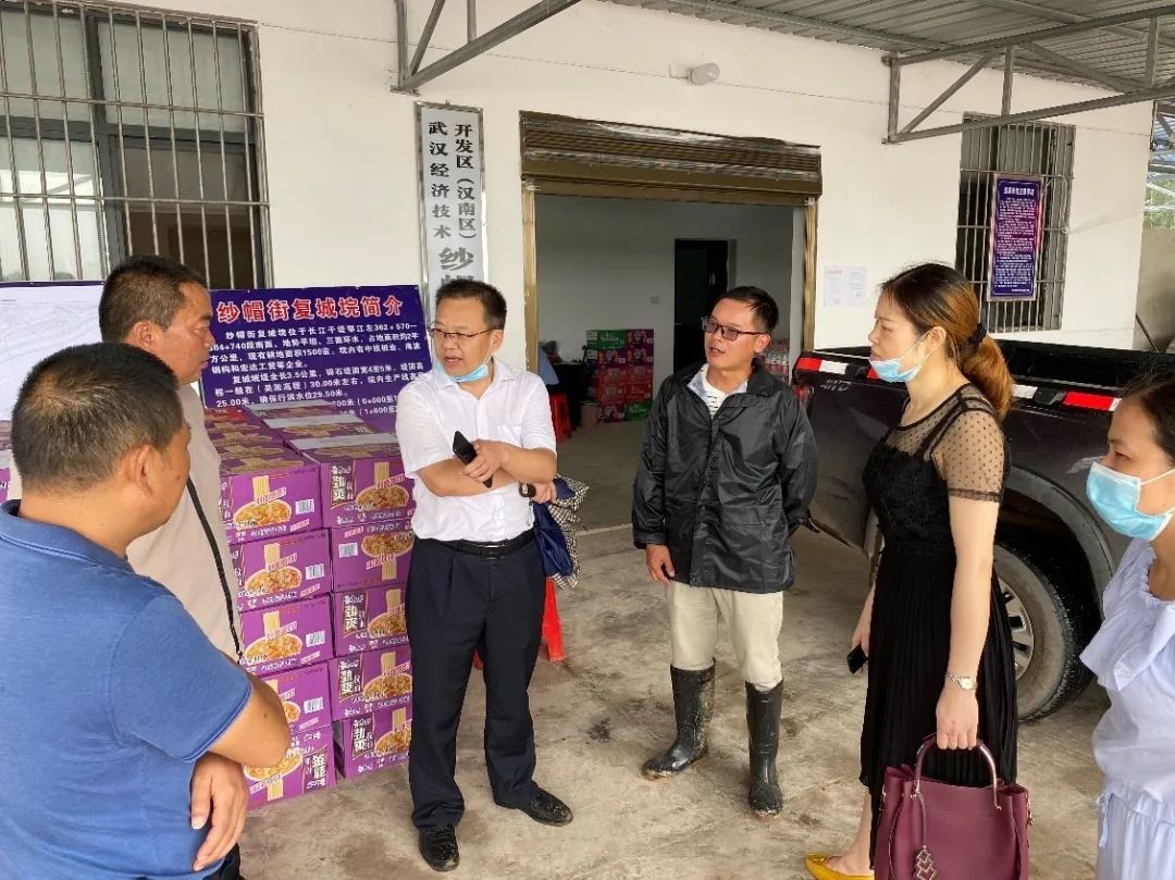 (海波重科新聞報道)2020年7月11日上午,海波重科總經理助理楊世珍攜人力資源部部長張妞妞赴堤防漢南總段復城院分段慰問海波重科一線抗洪搶險突擊隊,武漢開發區通用航空及衛星產業園主任王家茂攜園區辦公室主任魏磊,常務副總指揮張成軍,副總指揮章良文,副總指揮曾本堂,海波重科前線指揮部總指揮李晨光及一線領導做接待工作。