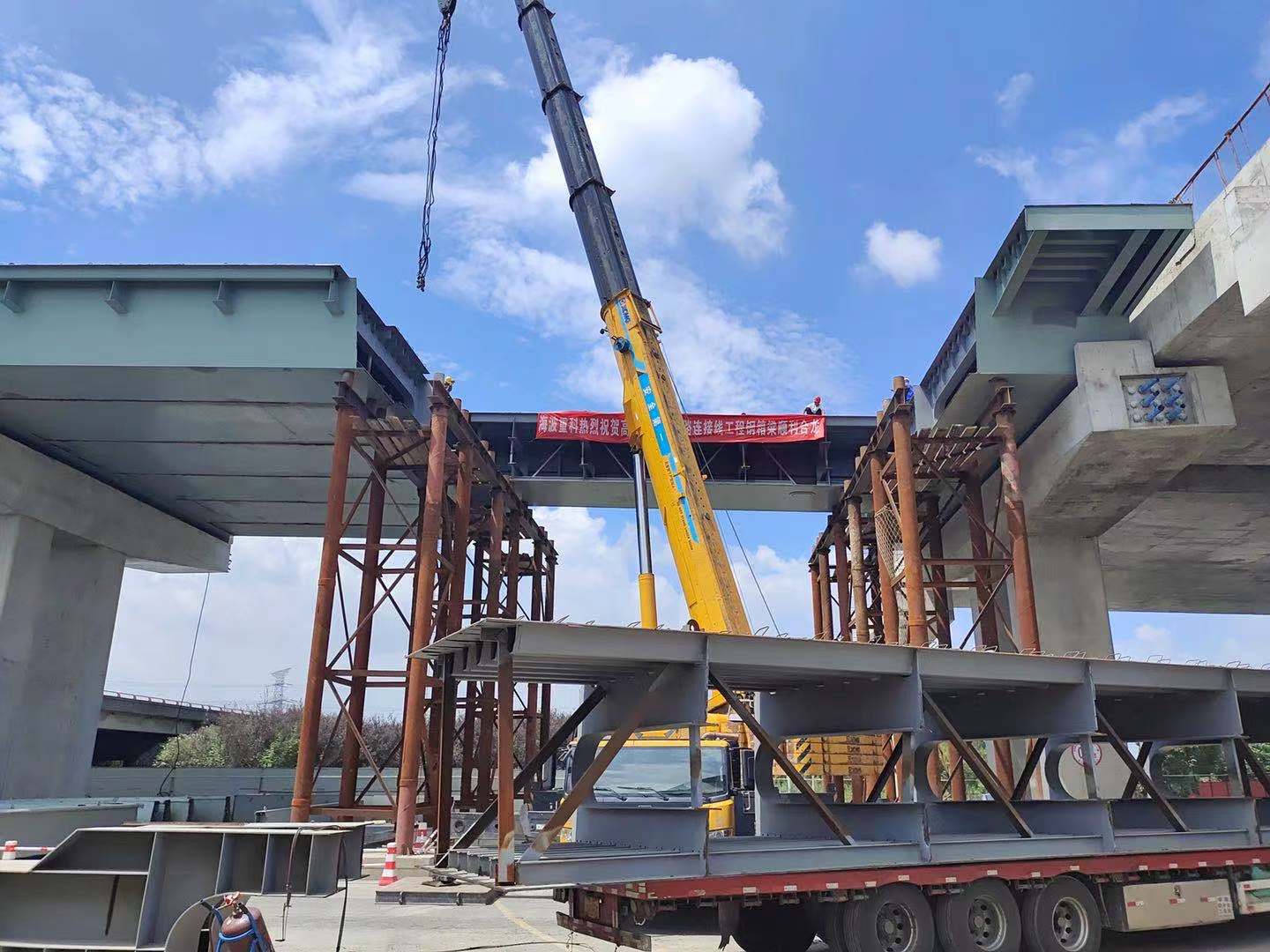 (海波重科新聞報(bào)道)2020年8月26日上午,由海波重科承建的高鐵新城快速路連接線工程上跨繞城高速主跨鋼箱梁成功合龍!意味著項(xiàng)目高架施工全面進(jìn)入沖刺階段,并為年內(nèi)實(shí)現(xiàn)高架通車目標(biāo)打下堅(jiān)實(shí)基礎(chǔ)。