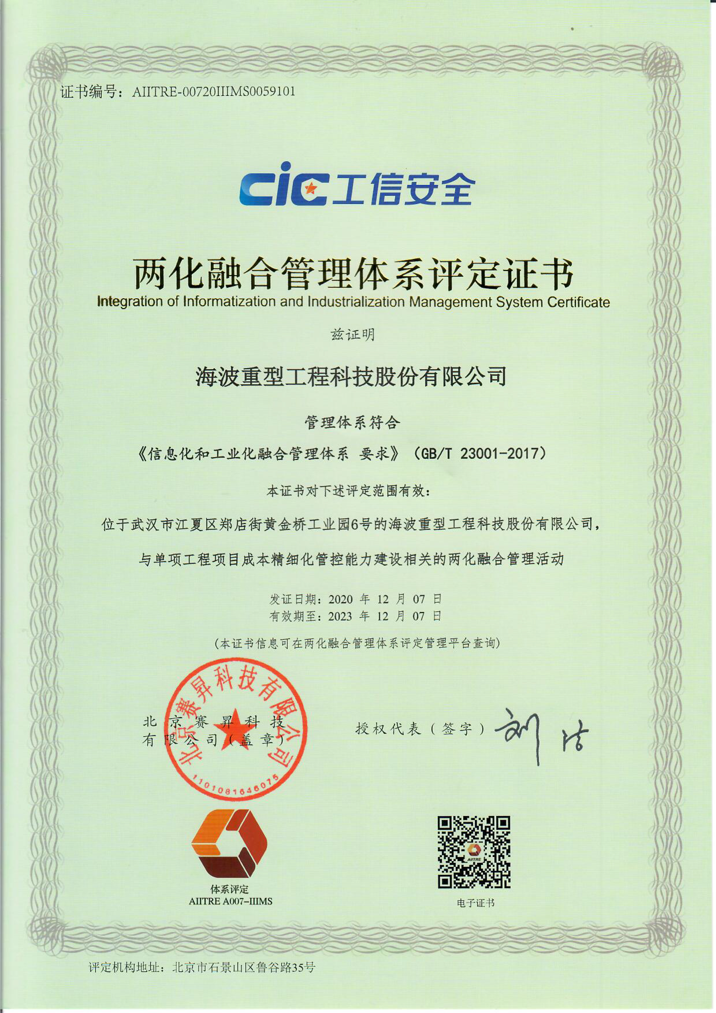 在當今數字經濟的大時代浪潮下,兩化融合是所有企業發展的必經之路,同時也是一場長期的、需要堅持的工作。通過此次評定,我司充分認識到兩化融合是企業技術改造和管理創新的重大舉措,對于提高我司的整體素質和核心競爭力以及實現科學管理將起到重大推進作用。未來海波重科將根據企業的實際情況,根據海波重科戰略規劃,持續推進“單項工程成本精細化管控能力”的建設,并逐步延伸到其他新型能力的打造,提高公司運營體系規范,提升公司信息化水平,通過信息化與工業化的深度融合大力推動并實現公司的轉型升級和高質量發展。
